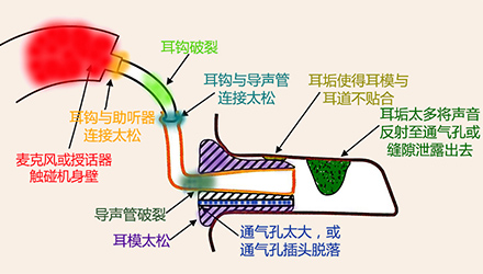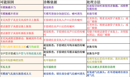 <span style="font-size:16px;"> 嘯叫,一直是引起助聽(tīng)器使用者不滿的一大原因,也是驗(yàn)配師在助聽(tīng)器調(diào)試時(shí)最為棘手的難題之一。</span></p><p><span style="font-size:16px;"> 通常,嘯叫分內(nèi)部嘯叫和外部嘯叫。內(nèi)部嘯叫常由內(nèi)部零件故障引起,而外部嘯叫則是與助聽(tīng)器外殼或耳模,助聽(tīng)器調(diào)試等有關(guān)。</span></p><p style="text-align: center;"><span style="font-size:16px;"><img src="/upfiles/201810100140556872.jpg" alt="" /><br /></span></p><p><span style="font-size:16px;"> 我們常常說(shuō)的外部嘯叫是在聲音被麥克風(fēng)拾取、放大器放大、授話器轉(zhuǎn)換后,又從各種縫隙(如外殼與耳道的縫隙、通氣孔)中“跑”出來(lái),又“跑”進(jìn)去,如此反復(fù)多次,使得聲音越來(lái)越大,產(chǎn)生“吱吱吱”的惱人嘯叫。</span></p><p><span style="font-size:16px;"> 以助聽(tīng)器的角度來(lái)看,shou話器把聲音授給耳朵聽(tīng),當(dāng)用“授”,即授話器。</span></p><p><span style="font-size:16px;"> 接下來(lái)將分別針對(duì)定制式(ITE/ITC/CIC)和耳背式(BTE)助聽(tīng)器的嘯叫問(wèn)題,跟著產(chǎn)生嘯叫的路徑,一一“攻破”嘯叫難題。注意,這里不說(shuō)助聽(tīng)器調(diào)試,只尋嘯叫路徑,并“堵死”嘯叫“通路”,讓進(jìn)入助聽(tīng)器的聲音“不走回頭路”。</span></p><p><span style="font-size:16px;"> 1、ITE/ITC/CIC助聽(tīng)器</span></p><p><span style="font-size:16px;"> 先來(lái)看看ITE/ITC/CIC助聽(tīng)器可能發(fā)生嘯叫的路徑。</span></p><p><span style="font-size:16px;"> 圖1里是一個(gè)定制式助聽(tīng)器佩戴于外耳道內(nèi)的示意圖,各種顏色的字和相應(yīng)顏色的標(biāo)記展示了發(fā)生嘯叫的各種情況。</span></p><center><span style="font-size:16px;"><img alt="" src="/upfiles/201810100142273990.png" width="440" height="250" /></span></center><p></p><p style="text-align: center;"><span style="font-size:16px;">圖1:ITE/ITC/CIC助聽(tīng)器發(fā)生嘯叫的路徑一覽</span></p><p style="text-align: left;"><span style="font-size:16px;"> 例如,紅色表示“麥克風(fēng)管子脫落”,這屬于助聽(tīng)器內(nèi)部零件脫落、故障,為內(nèi)部嘯叫。</span></p><p><span style="font-size:16px;"> 橙色表示“外殼佩戴太松”,這屬于外殼不密封的聲音泄露,為外部嘯叫。</span></p><p><span style="font-size:16px;"> 那如何檢查出是這些原因,并對(duì)問(wèn)題進(jìn)行相應(yīng)處理呢?請(qǐng)對(duì)照表1中的“診斷依據(jù)”和“處理方法”查看。</span></p><center><span style="font-size:16px;"><img alt="" src="/upfiles/201810100142337254.png" width="520" height="250" /></span></center><p></p><p style="text-align: center;"><span style="font-size:16px;">表1:ITE/ITC/CIC助聽(tīng)器產(chǎn)生嘯叫的可能原因及對(duì)應(yīng)的診斷依據(jù)、處理方法</span></p><p><span style="font-size:16px;"> 例如,當(dāng)發(fā)現(xiàn)“手指堵住麥克風(fēng)入聲口后仍有嘯叫”,可推斷原因是“麥克風(fēng)管子從麥克風(fēng)或外殼上脫落”或“麥克風(fēng)或授話器移動(dòng),觸碰到外殼或其他傳感器”,這時(shí)的處理方法是“送廠維修”。</span></p><p><span style="font-size:16px;"> 2、BTE助聽(tīng)器</span></p><p><span style="font-size:16px;"> 學(xué)會(huì)了看ITE/ITC/CIC助聽(tīng)器的一圖一表,再來(lái)看看BTE助聽(tīng)器的嘯叫路徑圖(圖2),以及表2中羅列的可能原因、診斷依據(jù)和處理方法,相信看起來(lái)更加輕松、直觀、一目了然。</span></p><center><span style="font-size:16px;"><img alt="" src="/upfiles/201810100142383483.png" width="440" height="250" /></span></center><p></p><p style="text-align: center;"><span style="font-size:16px;">圖2:BTE助聽(tīng)器發(fā)生嘯叫的路徑一覽</span></p><center><span style="font-size:16px;"><img alt="" src="/upfiles/201810100142449945.png" width="462" height="273" /></span></center><p></p><p style="text-align: center;"><span style="font-size:16px;">表2:BTE助聽(tīng)器產(chǎn)生嘯叫的可能原因及對(duì)應(yīng)的診斷依據(jù)、處理方法</span></p><p><span style="font-size:16px;"> 更多詳情請(qǐng)登錄m.4fbb.cn。</span></p>" />