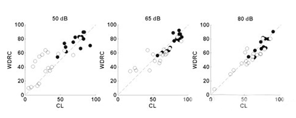 <span style="font-size:16px;"> 重度聽力損失是500Hz、1000Hz、2000Hz和4000Hz平均聽閾在61dB HL和80dB HL之間的聽力損失。重度聽損患者更趨向于:</span></p><p><span style="font-size:16px;"> (1)聽力損失時間較久;</span></p><p><span style="font-size:16px;"> (2)有助聽器佩戴史;</span></p><p><span style="font-size:16px;"> (3)言語分辨率較低;</span></p><p><span style="font-size:16px;"> (4)噪音環(huán)境中交流困難。</span></p><p><span style="font-size:16px;"> 1、重度聽力損失的特點</span></p><p><span style="font-size:16px;"> 60dB HL是單純外毛細(xì)胞損傷和內(nèi)外毛細(xì)胞共同損傷的分界點,內(nèi)毛細(xì)胞受損預(yù)示著重度聽力損失,這類患者的頻率選擇能力降低,在相關(guān)頻率范圍內(nèi)難以分辨兩種聲音。這是噪聲環(huán)境下交流困難的主要原因。</span></p><p><span style="font-size:16px;"> 簡單來說,頻率選擇能力越低,自身降噪能力越差,噪聲下識別信號的能力也就越差。</span></p><center><span style="font-size:16px;"><img alt="" src="/upfiles/20181016012659501.png" width="440" height="250" /></span></center><p></p><p><span style="font-size:16px;"> 2、選擇合適的放大策略</span></p><p><span style="font-size:16px;"> 反饋抑制:這項技術(shù)在傳統(tǒng)方法的基礎(chǔ)上有更好的減少嘯叫的效果。</span></p><p><span style="font-size:16px;"> 指向性麥克風(fēng):有指向性功能的助聽器可以明顯提高信噪比(SNR)。現(xiàn)在自適應(yīng)指向性麥克風(fēng)廣泛地應(yīng)用于大功率耳背機中。</span></p><p><span style="font-size:16px;"> 對于噪聲下言語交流困難的重度聽力損失患者,選配帶有指向性麥克風(fēng)的助聽器效果顯著。</span></p><p><span style="font-size:16px;"> 聽力學(xué)家對重度聽損人士的指向性麥克風(fēng)做過獲益度測試,發(fā)現(xiàn)平均言語識別能力提升了14%。</span></p><p><span style="font-size:16px;"> 重度聽損患者使用指向性功能時必須保證一定低頻增益,否則他們會感覺聲音不夠洪亮。</span></p><center><span style="font-size:16px;"><img alt="" src="/upfiles/201810160127134771.png" width="440" height="250" /></span></center><p></p><p><span style="font-size:16px;"> 寬動態(tài)范圍壓縮線路(WDRC):</span></p><p><span style="font-size:16px;"> 如下圖,白點是重度聽力損失患者的輔音識別得分,黑點是輕度至中度聽損患者的輔音識別得分;每位受試者佩戴四通道的耳背機,驗配采用NAL公式;測試言語聲強度分別為50dB SPL、65dB SPL和80dB SPL;比較WDRC和線性輸出壓縮限制(CL)兩種線路的得分。</span></p><center><span style="font-size:16px;"><img alt="" src="/upfiles/201810160127198326.png" width="600" height="240" /></span></center><p></p><p><span style="font-size:16px;"> 等分位于對角線附近代表兩種處理方式效果相似,得分位于對角線上方表示W(wǎng)DRC線路效果更好,而下方則表示CL線路效果更好。</span></p><p><span style="font-size:16px;"> 對重度聽損患者來說,輸入輕聲和中等聲時WDRC線路比CL線路效果更好;輸入響聲時兩種線路的區(qū)別并不大。所以使用WDRC線路可以獲得比CL線路更高的言語識別率。</span></p><p><span style="font-size:16px;"> 壓縮速度:壓縮越深可聽度越高,因為患者可以聽到更寬的聲音響度范圍。</span></p><p><span style="font-size:16px;"> 快反應(yīng)壓縮(起效和釋放時間很短)可以降低元音(響度較大)增益并提高輔音(響度較小)增益,從而提高可聽度。</span></p><p><span style="font-size:16px;"> 所以理論上來講,對于重度聽損人士,使用多通道助聽器、低壓縮拐點、高壓縮比、音節(jié)壓縮,可以最大程度提高驗配效果。</span></p><center><span style="font-size:16px;"><img alt="" src="/upfiles/201810160127304305.png" width="600" height="500" /></span></center><p></p><p><span style="font-size:16px;"> 但壓縮越深就意味著有聲音失真越大,音節(jié)壓縮丟失了重要言語信息,導(dǎo)致輔音分辨不清。若要保留這些信息,則需要慢反應(yīng)壓縮(起效和釋放時間較長)。</span></p><p><span style="font-size:16px;"> 最好的情況是在提高可聽度的同時還保證信號不失真,但目前很難實現(xiàn),找到二者的平衡點是最佳的選配方案。</span></p><center><span style="font-size:16px;"><img alt="" src="/upfiles/20181016012736476.png" width="440" height="250" /></span></center><p></p><p><span style="font-size:16px;"> 上圖為一組重度聽力損失患者選配快速和慢速WDRC線路的言語識別率對比。</span></p><p><span style="font-size:16px;"> 在輸入聲級為50和65 dB SPL時,快反應(yīng)壓縮線路的受試者得分明顯比慢反應(yīng)壓縮線路的受試者差;在80 dB SPL輸入聲級下則并無明顯差別。</span></p><p><span style="font-size:16px;"> 對輕度和中度聽力損失患者來說,無論何種輸入聲級,兩種壓縮方式的得分都沒有明顯差別(并未在圖中顯示)。</span></p><p><span style="font-size:16px;"> 對極重度聽力損失患者來說,可聽度比其他任何信息都重要,快反應(yīng)壓縮線路效果比慢反應(yīng)壓縮線路更好。</span></p><p><span style="font-size:16px;"> 綜上所述,在使用多通道WDRC線路助聽器前提下,一定程度的可聽度是必須的,在這個基礎(chǔ)上要追求最低的失真(最低的壓縮比以及最慢的壓縮),才能達(dá)到最好的驗配效果。</span></p><p><span style="font-size:16px;"> 我們經(jīng)常會遇到重度聽力損失患者,應(yīng)該找到適合他們的驗配策略并提供心理和生理咨詢。</span></p><p><span style="font-size:16px;"> 助聽器選配的效果受到外周及中樞聽覺系統(tǒng)的能力限制,重度感音神