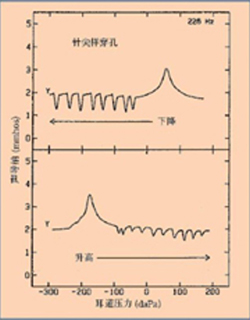 <span style="font-size:16px;"> 中耳是一種傳音結構,具有一定容積,內有聽骨鏈,并有肌肉和韌帶牽拉懸掛,可以看做一種特殊的聲學器件。通過研究中耳聲導納和聲阻抗,可以了解中耳的生理或病理狀況。聽力學常用“聲導抗測試”作為中耳聲阻抗、聲導納測試或二者的通用術語。基本測試包括鼓室聲導抗、聲反射和外耳道體積。</span></p><p><span style="font-size:16px;"> 鼓室聲導抗</span></p><p><span style="font-size:16px;"> 鼓室聲導抗測試通過對鼓膜外側聲能傳遞過程變化的測量,了解中耳功能狀態,使用探測音的頻率范圍是250~2000Hz,臨床上常用的低頻單成分鼓室圖選用226Hz探測音,還可以選用其他頻率探測音和寬頻探測音。</span></p><p><span style="font-size:16px;"> 鼓室聲導抗測試的結果用鼓室圖表示,鼓室圖的橫坐標為外耳道壓力(單位為daPa),縱坐標為聲導抗(臨床上常以容積替代表示,單位為mL或cc)。</span></p><p><span style="font-size:16px;"> 在鼓室聲導抗測試中,外耳道壓力在-400~200daPa之間逐漸增加或減少,記錄聲導抗隨壓力變化的改變,然后繪制成鼓室圖,反映中耳聲導抗和氣壓變化之間的動態關系。</span></p><p><span style="font-size:16px;"> 鼓室圖的峰壓位置、幅度及整體的形態與中耳的病變有密切關系,可以據此鑒別不同的中耳病變。鼓室圖可分為以下三型:</span></p><p><span style="font-size:16px;"> A型:峰值出現在-100~100daPa之間,高度在0.3~1.6mL之間,是正常鼓室圖。</span></p><p><span style="font-size:16px;"> </span></p><center><span style="font-size:16px;"><img alt="" src="/upfiles/201811130150229048.png" width="250" /></span></center><p></p><p><span style="font-size:16px;"> A型 鼓室聲導抗曲線</span></p><p><span style="font-size:16px;"> B型:無明顯峰值,高度低于0.3mL,多見于鼓室積液、耵聹栓塞。</span></p><p><span style="font-size:16px;"> </span></p><center><span style="font-size:16px;"><img alt="" src="/upfiles/201811130150276415.png" width="250" /></span></center><p></p><p><span style="font-size:16px;"> B型 鼓室聲導抗曲線</span></p><p><span style="font-size:16px;"> C型:峰值在-100mmdaPa之前,高度在0.3~1.6mL之間,多見于咽鼓管功能障礙。</span></p><p><span style="font-size:16px;"> </span></p><center><span style="font-size:16px;"><img alt="" src="/upfiles/201811130150347835.png" width="250" /></span></center><p></p><p><span style="font-size:16px;"> C型 鼓室聲導抗曲線</span></p><p><span style="font-size:16px;"> 在A型鼓室導抗圖中,又根據峰值的大小將A型分為Ad和As兩個亞型:</span></p><p><span style="font-size:16px;"> Ad型:峰值出現在-100~100daPa之間,但高度超過1.6mL,多見于鼓膜松弛、鼓膜愈合性穿孔和聽骨鏈中斷。</span></p><p><span style="font-size:16px;"> </span></p><center><span style="font-size:16px;"><img alt="" src="/upfiles/201811130150395377.png" width="250" /></span></center><p></p><p><span style="font-size:16px;"> Ad型 鼓室聲導抗曲線</span></p><p><span style="font-size:16px;"> As型:峰值出現在-100~100daPa之間,但高度低于0.3mL,多見于鐙骨固定。</span></p><p><span style="font-size:16px;"> </span></p><center><span style="font-size:16px;"><img alt="" src="/upfiles/201811130150449596.png" width="250" /></span></center><p></p><p><span style="font-size:16px;"> As型 鼓室聲導抗曲線</span></p><p><span style="font-size:16px;"> 除了上述原則外,還有一些特殊情況。例如鼓膜針尖樣穿孔,外耳道體積正常,但鼓室圖的形態很特殊,如下圖所示。</span></p><p><span style="font-size:16px;"> </span></p><center><span style="font-size:16px;"><img alt="" src="/upfiles/20181113015049884.png" width="250" /></span></center><p></p><p><span style="font-size:16px;"> 上圖為壓力從正到負變化,峰值出現在正向。下圖為壓力從負到正變化,峰值出現在負向。兩鼓室圖中鋸齒狀的尾部表示在鼓膜針尖樣穿孔的邊緣,壓力出現波動。</span></p><p><span style="font-size:16px;"> 外耳道體積</span></p><p><span style="font-size:16px;"> 成年人外耳道體積正常值為1.0~1.5mL,兒童外耳道體積正常值為0.7~1.0mL</span></p><p><span style="font-size:16px;"> 鼓膜穿孔時,因外耳道與鼓室及乳突成為一個整體,所以外耳道體積可以是正常值的3~4倍。外耳道耵聹栓塞時,僅為正常值的一半。當中耳腔內充滿液體、炎癥、膽脂瘤或由慢性中耳疾病導致的乳突氣房消失時,盡管鼓膜穿孔,但耳道容積值仍在正常值范圍內。</span></p><p><span style="font-size:16px;"> 聲反射</span></p><p><span style="font-size:16px;"> 當人耳受到足夠大強度的聲音刺激時,雙側鐙骨肌收縮,鐙骨足板離開前庭窗,以保護內耳,避免其受損傷。它是一種保護性反射。</span></p><p><span style="font-size:16px;"> 聲反射閾(ART)指的是能引起聲反射的最小刺激聲強度,也就是指能引起鐙骨肌收縮的最小刺激聲強度。臨床上通常采用500、1000、2000Hz的純音作為刺激聲,有時也用寬帶噪聲。通過大量的研究,聲反射閾的正常值范圍已經建立:當刺激信號為純音時,正常值為85~100dBSPL,比寬帶噪聲大約低20dB。</span></p><p><span style="font-size:16px;"> </span></p><center><span style="font-size:16px;"><img alt="" src="/upfiles/201811130150555610.png" width="440" /></span></center><p></p><p><span style="font-size:16px;"> 聲反射衰減是指在聲刺激持續的時間內,聲反射幅度逐漸降低的現象。多出現于蝸后病變,測試方法為刺激時程10s,刺激聲強度為聲反射閾上10dB,于5s內,聲反射振幅減少50%者為陽性,提示蝸后病變。</span></p><p><span style="font-size:16px;"> </span></p><center><span style="font-size:16px;"><img alt="" src="/upfiles/201811130151007512.png" width="440" /></