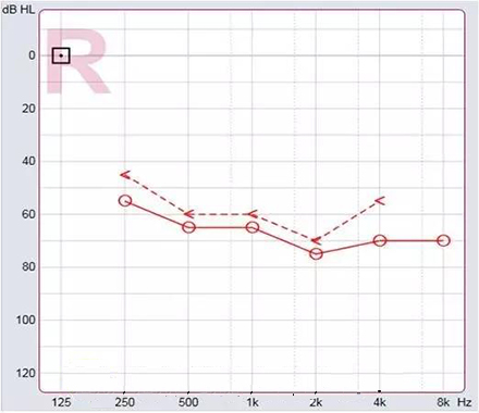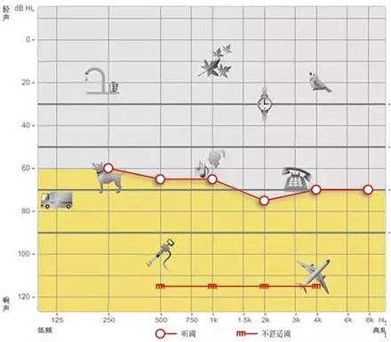 純音測試聽力圖的橫坐標為頻率,從左至右表示測試聲的頻率從低到高,即125Hz至8000Hz;縱坐標為強度,從上至下表示受試者能聽到的最小的聲音強度,以dBHL為單位。如下圖所示:</p><p> </p><center><img alt="" src="/upfiles/201903250213137760.png" width="440" height="400" /></center><p></p><p> 聽力圖的畫法自從1943年在C.C.Bunch的著作中出現后,至今沒有改變。通常右耳的測試結果用紅色表示,左耳用藍色。下圖是ASHA(1990)建議使用的各種標記符號,這些符號已在世界各地廣泛使用。</p><p> </p><center><img alt="" src="/upfiles/201903250213216822.png" width="440" height="250" /></center><p></p><p> 純音測試的測試項目有氣導、骨導、舒適閾與不舒適閾。那么這簡簡單單的聽力圖在驗配過程中有哪些重要作用呢?</p><p> 1、確定聽力損失程度</p><p> 按照世界衛生組織(WHO)1997年的標準,根據0.5kHz、1kHz、2kHz、和4kHz氣導平均聽閾值,將聽力損失分為輕度、中度、重度和極重度。</p><p> </p><center><img alt="" src="/upfiles/201903250213312187.png" width="440" height="180" /></center><p></p><p> 世界衛生組織(WHO-1997)的聽力障礙分級標準</p><p> 舉例</p><p> 下圖為某一聽力損失者所測得的聽力圖</p><p> </p><center><img alt="" src="/upfiles/201903250213367902.png" width="440" height="380" /></center><p></p><p> 0.5kHz的聽閾為65dBHL,1kHz的聽閾為65dBHL,2kHz的聽閾為75dBHL,4kHz的聽閾為70dBHL。則平均聽閾為(65+65+75+70)/4=68.75。將68.75dBHL代入以上分級表格,得到該聽力損失者的損失程度為重度。 聽力損失程度的確定有利于確定助聽器的功率。</p><p> 2、判斷聽力損失性質</p><p> 根據氣導、骨導的關系,可將聽力損失分為傳導性聽力損失、感音神經性聽力損失及混合性聽力損失。</p><p> 骨導與氣導之差大于10dB,且骨導在正常范圍內為傳導性聽力損失,表明聽力下降是由外耳、中耳病變引起。</p><p> 氣骨導一致(≤10dB)且都在正常范圍之外為感音神經性聽力損失。表明聽力下降是由耳蝸、聽神經損傷引起。</p><p> 骨導與氣導之差大于10dB,但骨導在正常范圍之外為混合性聽力損失,表明以上兩種聽力損失均有,由上述多種部位病變引起聽力下降。確定聽力損失性質還需結合臨床表現,也有助于助聽器佩戴效果的預測。</p><p> 3、解釋聽力損失者的日常生活困難</p><p> 聽力損失者在日常生活中經常遇到的問題有1)時而聽得到,時而聽不到;2)聽得到,聽不清;3)小聲聽不到,大聲受不了。</p><p> 時而聽得到時而聽不到</p><p> 以下圖平坦型聽力曲線為例,當周圍言語聲高于其聽閾,即處于曲線下方區域時,該聽力損失者能聽到;當周圍言語聲低于其聽閾,即處于曲線上方區域時,聽力損失者則聽不到對方的說話聲。此為“時而聽得到,時而聽不到”。</p><p> </p><center><img alt="" src="/upfiles/201903250213445950.png" width="440" height="340" /></center><p></p><p> 聽得到 聽不清</p><p> 中文漢語元音輔音的頻率及響度有其分布圖,如下圖所示。以陡降型聽力曲線為例,該聽力損失者聽不到大部分的輔音。聽得清不清楚,主要取決于高頻輔音聽得到聽不到。例如該聽力損失者“g”、“ch”聽不到,但“u”能聽到,因此,他會將“姑姑”、“出租”都聽成“uu”。聽不清楚時,再結合口型,前后句的冗余度猜測。猜對則談話繼續,猜錯則打岔。兒童聽力曲線若是如此,長期接收不正確的語音,會出現口齒不清。</p><p> </p><center><img alt="" src="/upfiles/201903250213526855.png" width="440" height="340" /></center><p></p><p> 小聲聽不到 大聲受不了</p><p> 小聲聽不到,大聲受不了是重振現象。以下圖聽力曲線為例,“飛機”處于不舒適閾附近,聽力損失者對“飛機”的聲音聽著受不了。另外,該聽力損失者聽不到“手表”等聲音。</p><p> </p><center><img alt="" src="/upfiles/201903250214013300.png" width="440" height="385" /></center><p></p><p> 為了更好地使聽力損失者家屬明白聽力損失者的困難,目前有較多的工具可以模擬聽力損失狀態下的溝通與交流。</p><p> </p><center><img alt="" src="/upfiles/201903250214075950.png" width="440" height="370" /></center><p></p><p> 比如,在聲音樣本中選擇“餐廳”,并選擇“正常”,可聽到正常聽力者在“餐廳”環境中聽到的聲音;若選擇“患者”,則可使聽力正常者聽到聽力損失者聽到的聲音,令聽力正常者親身體驗他們所處的“模糊世界”。</p><p> 在“典型聽力圖”中,有“輕度”、“中度”、“重度”、“極重度”、“陡降型聽力”等選項,若選擇“重度”,則可體驗重度聽力損失者所聽到的聲音。</p><p> 4、調試</p><p> 聽力圖在助聽器驗配調試過程中也起著非常重要的作用。</p><p> 首次驗配</p><p> 助聽器處方公式結合聽力圖計算出聽力損失者的目標增益,為驗配師的進一步調節奠定了基礎。聽力圖結果越準確,首次驗配的滿意度越高。</p><p> 調試</p><p> 在助聽器調試過程中,不能忽視聽力圖的作用。舉一實例:下圖為某助聽器佩戴者的聽力圖,經過多次降低高頻增益,仍反應聲音刺耳。通過對聽力圖的觀察,該佩戴者2kHz處的聽閾較高,且2kHz處的增益亦較多。將2kHz處的增益降低后,助聽器佩戴者的滿意度提高。</p><p> 讀懂聽力圖是驗配助聽器過程中非常重要的一環,只有讀懂聽力圖并解釋清楚聽力圖,對成功驗配助聽器可達到事半功倍的效果。在助聽器驗配調試環節,亦不能忽視聽力圖。聽力圖在整個助聽器驗配過程中起到不可替代的作用。</p><p> 更多詳情請登錄聽覺有道助聽器m.4fbb.cn</p>" />