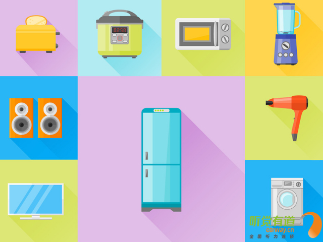 生活中有一類噪音源會被大家忽視,那就是家用電器產生的噪音。資料顯示,在1米的距離內,音量放大的電視機、收音機、錄音機的聲級可達60-70分貝;電風扇為42-70分貝;電冰箱為34-50分貝;洗衣機轉動時馬達聲為60-70分貝;電吹風為55-90分貝;電動剃須刀為47-60分貝;音響的聲級更高達90分貝。由此可見家用電器的噪音不比馬路上汽車喇叭的噪音低。