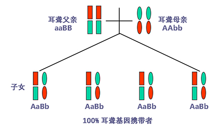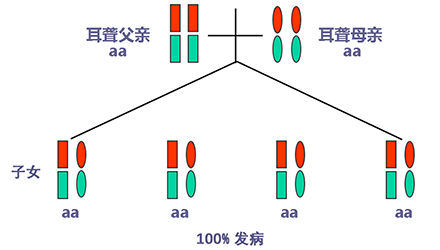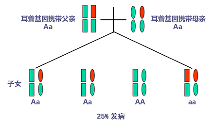 聽力正常有時只是“表象”,如果骨子里“隱藏”著聽損致病基因,這代“躲”過了聽力損失,可是下一代、下下一代呢?</p><p> 生活中我們會發(fā)現(xiàn),有一些父母雙方都有正常的聽力,但生出的孩子卻患有遺傳性聽力損失,很多人都會感到詫異,甚至父母本身都無法相信自己竟然生出了弱聽的孩子。</p><p> 其實,此類“怪異事情”的發(fā)生離不開基因的作用,這與遺傳性聽損中的常染色體隱性遺傳密切相關。</p><p> 今天就帶大家看看:常染色體隱性遺傳性聽損是怎么一回事?它有什么特點呢?基因又是如何“從中作祟”的呢?</p><p> 先來說說隱性遺傳為什么“隱藏”在骨子里</p><p> 俗話說,龍生龍,鳳生鳳,老鼠的兒子會打洞。這些表現(xiàn)都是基因所賦予的、與生俱來的,我們稱這種表現(xiàn)是顯性的。但有時,即便你骨子里帶著那份基因,可是沒有表現(xiàn)出來。</p><p> 例如上文說到的,父母雙方聽力正常,但其實他們仍有聽損致病基因,這種表現(xiàn)就叫隱性。</p><p> </p><center><img alt="" src="/upfiles/201904260337585875.png" width="440" height="250" /></center><p></p><p> 接著說說常染色體隱性遺傳性聽損“隱藏”的聽力損失</p><p> 常染色體隱性遺傳性聽損是指與聽力損失表型相關的基因位于常染色體上,是最常見的遺傳性聽損,約占80%。 一般而言,這類聽力損失多指非綜合征型聽損,即聽力下降是其唯一臨床表現(xiàn),大多數患者癥狀早發(fā)且程度較重。</p><p> 這類聽力損失只有在來自父母的等位基因均攜帶致病突變時才出現(xiàn)聽力下降。</p><p> </p><center><img alt="" src="/upfiles/201904260338048765.png" width="440" height="250" /></center><p></p><p> 根據人類基因組命名委員會的規(guī)則,以DFNB來表示常染色體隱性遺傳性聽損。</p><p> 第一個致病基因座位表述為DFNB1,此后依據基因座發(fā)現(xiàn)及獲得命名的時間順序,依次命名為DFNB2,DFNB3……</p><p> 目前,常染色體隱性遺傳的基因座位一共有86個。其中DFNB1和DFNB18中各有兩個聽損致病基因,其他為各一個聽損致病基因。</p><p> 例如,GJB2基因是中國人最常見的聽損致病基因,在兒童非綜合征聽損中占40%,其基因座位為DFNB1。</p><p> </p><center><img alt="" src="/upfiles/201904260338091241.png" width="440" height="250" /></center><p></p><p> 聽損隱性遺傳表現(xiàn)各式各樣不是想“躲”就能“躲”</p><p> 涉及到不同聽損致病基因的共同作用,常染色體隱性遺傳方式有很多,下面就以最常見且最簡單的方式進行舉例分析:</p><p> 1. 父母雙方聽力正常,都為聽損致病等位基因的攜帶者(Aa),則子女中有25%的概率患有聽力損失,50%的概率為聽損致病基因攜帶者。</p><p> </p><center><img alt="" src="/upfiles/201904260338147337.png" width="440" height="250" /></center><p></p><p> 2. 父母雙方都患有聽力損失,且聽損致病基因為等位基因(aa),則子女基因都為(aa),100%患有聽力損失,也就是代代相傳。</p><p> </p><center><img alt="" src="/upfiles/20190426033818859.png" width="440" height="250" /></center><p></p><p> 3. 父母一方為聽力正常者(AA),另一方患有聽力損失(aa),則子女基因都為(Aa),即聽力正常的聽損致病基因攜帶者。</p><p> </p><center><img alt="" src="/upfiles/201904260338249987.png" width="440" height="250" /></center><p></p><p> 4. 父母一方為聽力正常的聽損致病基因攜帶者(Aa),另一方患有聽力損失(aa),則子女基因50%的概率為聽力正常但攜帶聽損致病基因(Aa),50%的概率患有聽力損失(aa)。</p><p> </p><center><img alt="" src="/upfiles/201904260338297827.png" width="440" height="250" /></center><p></p><p> 5. 父母雙方都有聽力損失,但非等位基因,父親為(aaBB),母親為(AAbb),則子女基因都為AaBb,即100%的概率聽力正常。</p><p> </p><center><img alt="" src="/upfiles/201904260338427827.png" width="440" height="250" /></center><p></p><p> 常染色體隱性聽損遺傳的特征下一代“躲”得過嗎?根據如上分析,我們可以總結常染色體隱性遺傳性聽損具有以下特征:</p><p> 1. 聽損致病基因位于常染色體,因而聽損致病基因的遺傳與性別無關,即男、女性的患病機會均等;</p><p> 2. 系譜中通常看不到連續(xù)傳遞現(xiàn)象,往往是散發(fā)病例,但同胞中可有多人患病;</p><p> 3. 患者的雙親一般不患病,但都是致病基因的攜帶者;</p><p> 4. 患者的同胞有1/4的風險患病,患者表型正常的同胞中有2/3的概率為攜帶者;</p><p> 5. 患者的后代一般不發(fā)病,但一定是聽損致病基因攜帶者;</p><p> 6. 近親婚配時,子女的發(fā)病風險顯著提高,因為共同的祖先可能傳遞給他們共同的突變基因。</p><p> </p><center><img alt="" src="/upfiles/201904260338494272.png" width="440" height="250" /></center><p></p><p> 可見,遺傳性聽損有多種多樣的表現(xiàn)形式,需要細分遺傳模式。 父母的不同表型和不同聽損致病基因決定了其后代各種各樣的表現(xiàn)形式。</p><p> 正常聽力的父母可能生出弱聽的孩子,哪怕是同有聽損的父母也有可能生出聽力正常的孩子。</p><p> 隱性基因表現(xiàn)各異怎么辦?唯有基因檢測明確</p><p> 所以,要想知道自己及其配偶是否攜帶聽損致病基因,是否會遺傳給后代,后代的遺傳概率有多大,如何規(guī)避部分致病基因導致的聽力下降......唯有通過遺傳性聽障基因檢測。</p><p> 才能幫助我們更好了解各種可能的表現(xiàn)形式,進而準確分析遺傳模式,推斷后代可能患有聽損的概率,以規(guī)避生育風險及日后的精神和經濟負擔。</p><p> 畢竟,隱性遺傳雖可以讓我們表現(xiàn)為聽力
