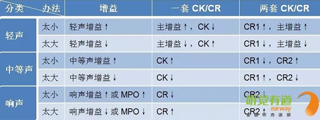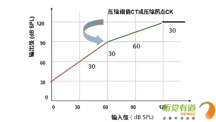 顧名思義,壓縮就是把超過一定強度的聲音減小至聽損患者縮小的殘余聽覺動態范圍里。相較于線性放大,壓縮可以有效達到“小聲聽得見,大聲受得了”的要求,尤其適用于感音神經性患者。</p><p> 壓縮參數主要有三個:壓縮拐點/壓縮閾值(CK/CT)、壓縮比(CR)與壓縮時間(起效時間AT,釋放時間RT)。下圖:橫坐標代表輸入級,即未經助聽器放大的聲音;縱坐標代表輸出級,即放大后的聲音。輸入與輸出的關系:輸出級=輸入級+增益,亦可表示:放大后的聲音=放大前的聲音+放大量。有了這個基礎,我們就可以清楚地理解這兩個參數的含義并進行調節。</p><p> 1、壓縮拐點(CK):線性放大與壓縮放大的臨界輸入級,此處為60 dB SPL,即輸入聲強度在60 dB SPL以下時為線性放大,超過60 dB SPL為壓縮放大。①紅線的輸入級范圍為0~60 dB,這段的聲音為線性放大,隨意找一個輸入級,用它對應的輸出級減去輸入級,得出線性放大的增益為30 dB;②當輸入級大于60 dB時,綠色曲線為壓縮放大,輸出與對應輸入的差值不再是30 dB,而是隨著輸入級增加,增益逐漸減小;③當輸出達到最大輸出限制時,輸出不再增大,保持在最大輸出限制位置。</p><p> </p><center><img alt="" src="/upfiles/201906120320158907.png" width="440" height="250" /></center><p></p><p> 2、壓縮比(CR):輸入級差值與輸出級差值的比值。上圖中線性狀態時壓縮比為1:1,可以找兩對數值,(輸入60-輸入0)/(輸出90-輸出30)=60/60=1:1。壓縮狀態時壓縮比為2:1,同樣可以找兩對數值,(輸入120-輸入60)/(輸出120-輸出90)=60/30=2:1。</p><p> 3、壓縮方式(CM):由于起效時間(AT)與釋放時間(RT)的不同組合構成不同的壓縮方式。</p><p> 助聽器由線性變換到壓縮時所需的穩定時間為起效時間。起效時間短,說明對大聲壓縮及時,不會造成聽力傷害;起效時間長,說明對大聲壓縮緩慢,有可能短暫感覺刺耳,但可以最大程度還原小聲與大聲的強度差異感。</p><p> 助聽器由壓縮回到線性時所需的穩定時間為釋放時間。釋放時間短,說明對小聲及時線性放大,避免小聲聽不見;釋放時間長,說明對小聲還在壓縮,放大不及時,有可能小聲聽不見,但可以最大程度還原大聲和小聲的強度差異感。</p><p> 我們可以做個比喻來了解壓縮的概念。假使你在高速路上,突然前方出現一個大大的警示牌,提示有事故發生,這時你需要迅速踩剎車以防撞擊。越早踩剎車相當于越早壓縮(壓縮拐點越小),剎車的力度越大相當于壓縮比越大,開始剎車至時速降至安全時速所需時間相當于起效時間,過了事故點踩油門,車速恢復至高速所需時間相當于釋放時間。</p><p> 壓縮是為了保護人們聽覺系統免受瞬間或持續中、大強度聲音的刺激,同時又能有效放大各種小聲的基本技術手段,可以使小聲、中等聲和大聲無一遺漏地進入聽障患者縮小的聽覺動態范圍中。</p><p> 恰當的壓縮拐點與壓縮比滿足了聽障患者達到“小聲聽得見、大聲受得了”的要求,而壓縮的起效時間與釋放時間設定需要考慮聽障患者個性化的聆聽喜好。</p><p> 起效時間與釋放時間都短,優點是小聲放大及時、大聲壓縮及時,即小聲聽得到大聲不覺吵,缺點是大小聲強度差異感不大;起效時間短釋放時間長,優點是大小聲強度差異感真實,音節間噪聲小,缺點是有可能小聲放大不足。</p><p> 事實上,各企業的助聽器軟件往往可以直接調節輕聲增益、中等聲增益、大聲增益與主增益而間接控制壓縮參數,有的軟件可見一套CK/CR,有的軟件可見兩套CK/CR。有些軟件會自動默認為自適應壓縮方式,能夠根據聲音強度差異自動調整。</p><p> 下圖匯總了對不同強度聲音不適的解決辦法,供大家參考。</p><p> </p><p><center><img alt="" src="/upfiles/201906120320202761.png" width="640" height="240" /></center><center><p style="text-align: left;"> 更多詳情請登錄聽覺有道助聽器m.4fbb.cn</p><br /></center></p>" />