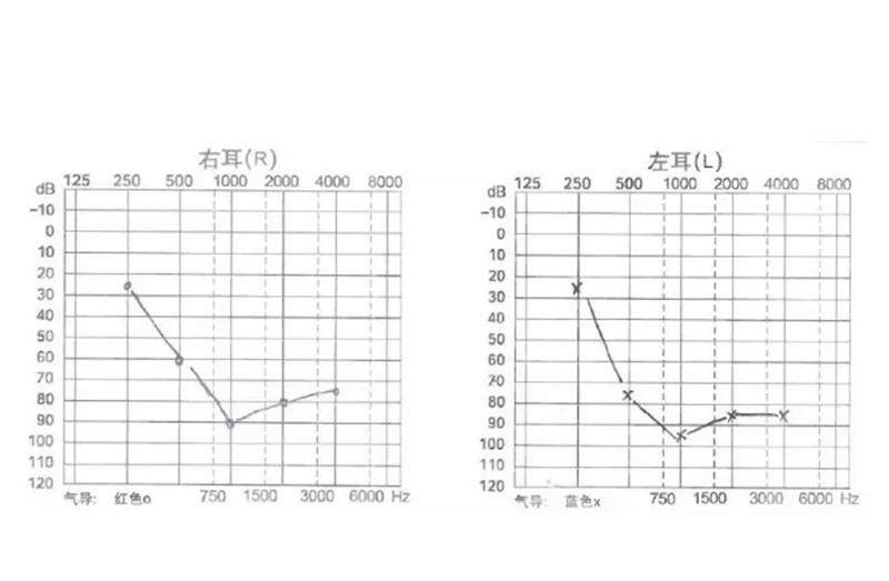 如果:自小雙耳神經性聽力損失,無其它疾病。并且聽力圖如下: