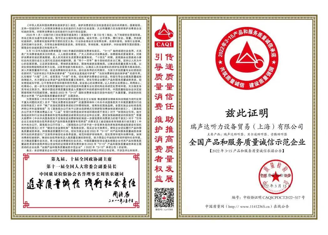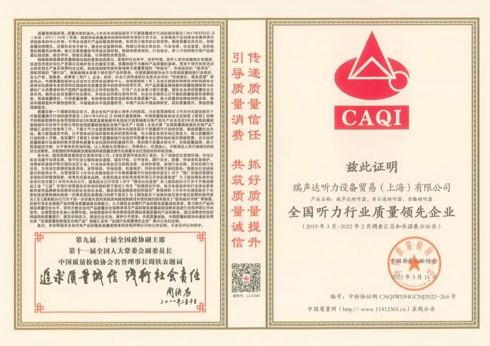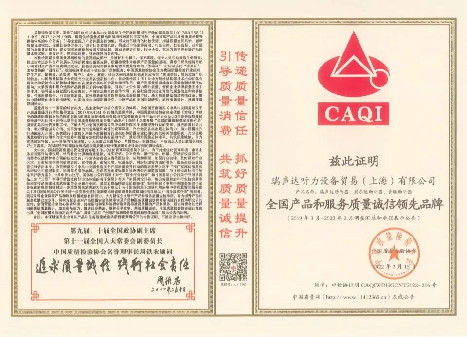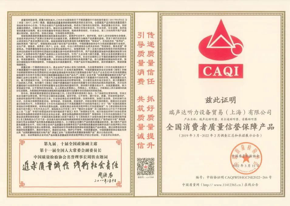 <span style="white-space:pre"> </span>科技飛速發(fā)展,產(chǎn)品、品牌的多元化給用戶帶來豐富選擇的同時,也令很多不少用戶面臨難以取舍的困境。2022年瑞聲達(dá)聽力設(shè)備貿(mào)易(上海)有限公司攜旗下多個品牌(貝爾通、瑞聲達(dá)、音騰)再再再次獲得中國質(zhì)量檢驗協(xié)會頒發(fā)的多項榮譽證書,對消費者而言無疑是一顆定心丸。<br /></span><p style="text-align: center;"><img src="/upfiles/202203160932568483.jpg" width="640" alt="" /><br /></p><span style="font-size:16px;"> 中國質(zhì)量檢驗協(xié)會是國家市場監(jiān)督管理總局主管下的質(zhì)量檢驗行業(yè)組織和質(zhì)量專業(yè)機構(gòu),為充分發(fā)揮名優(yōu)企業(yè)、消費者之間的橋梁和紐帶作用,向廣大消費者提供權(quán)威可靠的質(zhì)量信息,切實維護(hù)廣大名優(yōu)產(chǎn)品生產(chǎn)企業(yè)及消費者的合法權(quán)益。<br /><br /> 2022年中消協(xié)將消費維權(quán)年主題定為“共促消費公平”,強調(diào)實現(xiàn)更有保障消費公平;積極引導(dǎo)“科技向善”。作為深耕聽力健康領(lǐng)域多年的企業(yè),貝爾通一直堅持產(chǎn)品至上,客戶為中心的理念,積極履行企業(yè)社會責(zé)任,未來我們將繼續(xù)以高標(biāo)準(zhǔn)約束自身,賦新行業(yè)。<br /></span><p><span style="font-size:16px;"><br /></span></p><p style="text-align: center;"><span style="font-size:16px;"><img src="/upfiles/202203160926451939.jpg" width="640" alt="" /><br /></span></p><div style="text-align: center;"><span style="font-size:16px;"> 全國產(chǎn)品和服務(wù)質(zhì)量誠信領(lǐng)先品牌</span></div><p><span style="font-size:16px;"><br /></span></p><p style="text-align: center;"><span style="font-size:16px;"><img src="/upfiles/202203160927066008.jpg" width="640" alt="" /><br /></span></p><div style="text-align: center;"><span style="font-size:16px;"> 全國消費者質(zhì)量信譽保障產(chǎn)品</span></div><div style="text-align: center;"><span style="font-size:16px;"><br /></span></div><div style="text-align: center;"><span style="font-size:16px;"><img src="/upfiles/202203160927319978.jpg" width="640" alt="" /><br /></span></div><div style="text-align: center;"><span style="font-size:16px;"><br /></span></div><div style="text-align: center;"><span style="font-size:16px;"> 全國聽力行業(yè)質(zhì)量領(lǐng)先企業(yè)</span></div><span style="font-size:16px;"><br /> 這一份份頗具含金量的證書,不再只是國家與公眾對瑞聲達(dá)及其旗下多個品牌(貝爾通、瑞聲達(dá)、音騰)的高度認(rèn)可,也是鞭策我們繼續(xù)前行的極大動力,敦促我們持續(xù)為更多用戶提供優(yōu)質(zhì)的產(chǎn)品與貼心的服務(wù)。<br /><br /><br /> 來源:美國貝爾通助聽器</span>" />