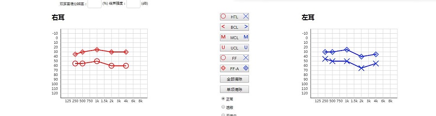 2、孩子目前右耳是重度聽(tīng)損,左耳中度聽(tīng)損,如果沒(méi)有做耳蝸的打算,選配助聽(tīng)器必須雙耳驗(yàn)配(告知雙耳聆聽(tīng)的必要性),功率選稍大一個(gè)型號(hào),以備后期聽(tīng)力范圍波動(dòng)時(shí)有調(diào)試的空間。